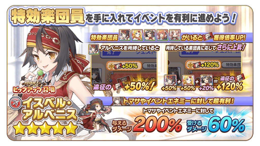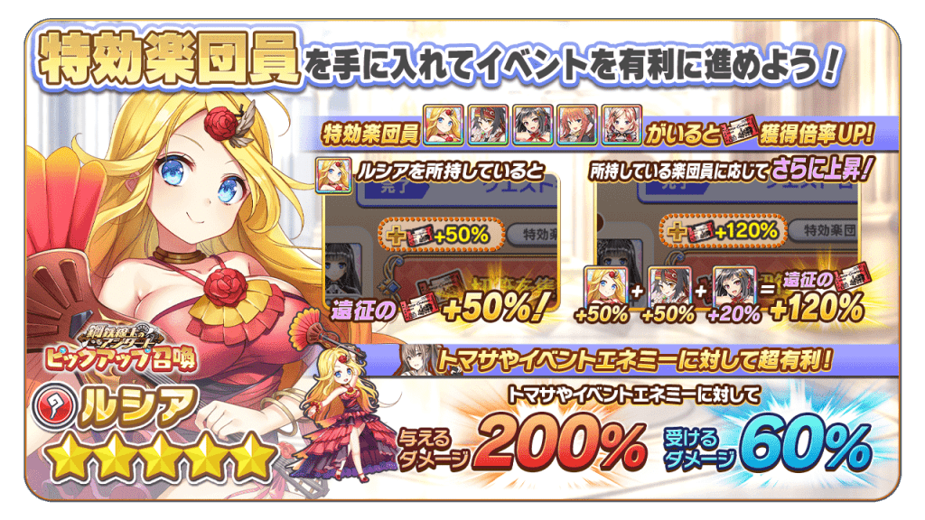 「切符」を集めると、新★4楽団員「エルシリア・F・アルボス」含む豪華報酬を獲得できます!
