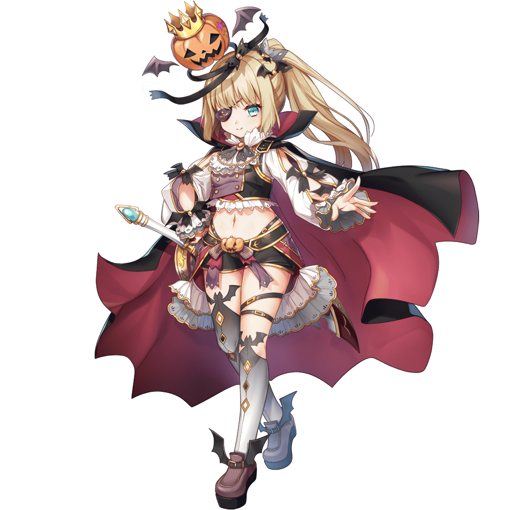 | 自己紹介(初登場) | 今更、わざわざ自己紹介が必要ですか? まさか格好が違う程度で、この私が誰だかわからなくなる訳もないでしょう? 私だって仮装くらいします。そして私に相応しいモチーフを考えた結果、こうなりました。 信者達を増やすいい機会でもありますからね。今の私は言うならば「夜の楽劇王」。私の力にひれ伏して、我が眷属となりなさい。 |
