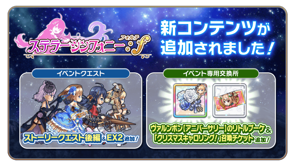 本日より、期間限定イベント「ステラーシンフォニー:f」に新コンテンツを追加しました。