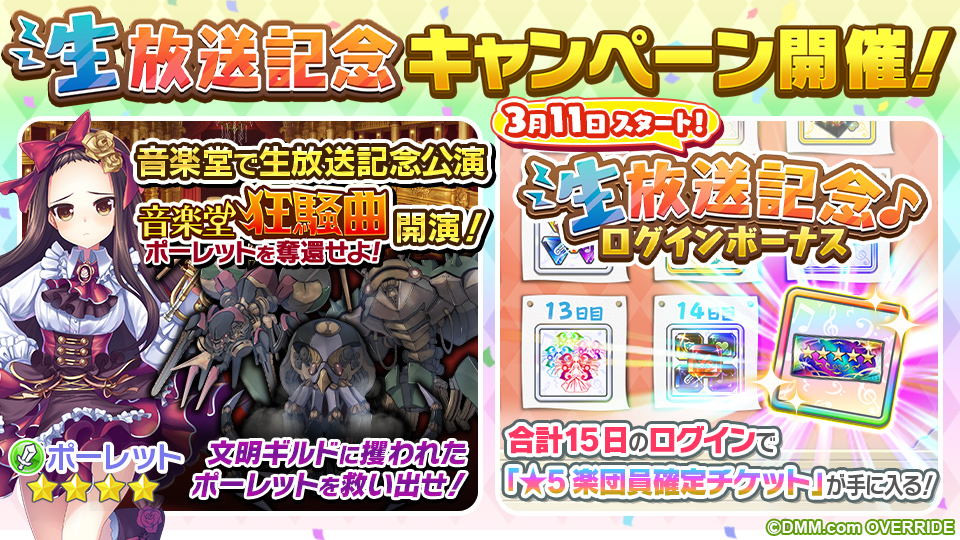 1.生放送記念公演「【緊急公演】音楽堂狂騒曲 ポーレットを奪還せよ!」開催 ヴィエンナ音楽院へ急げ!