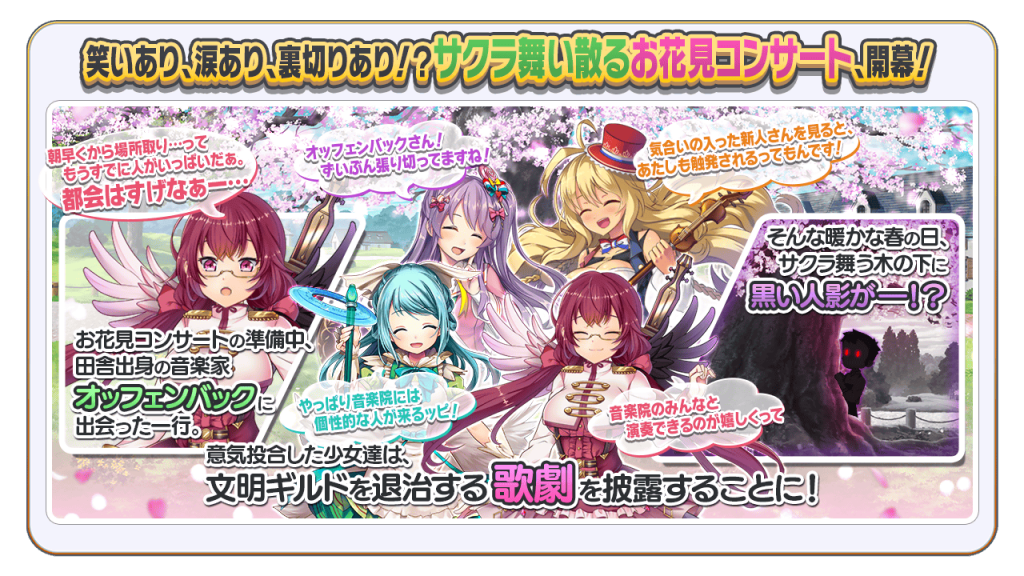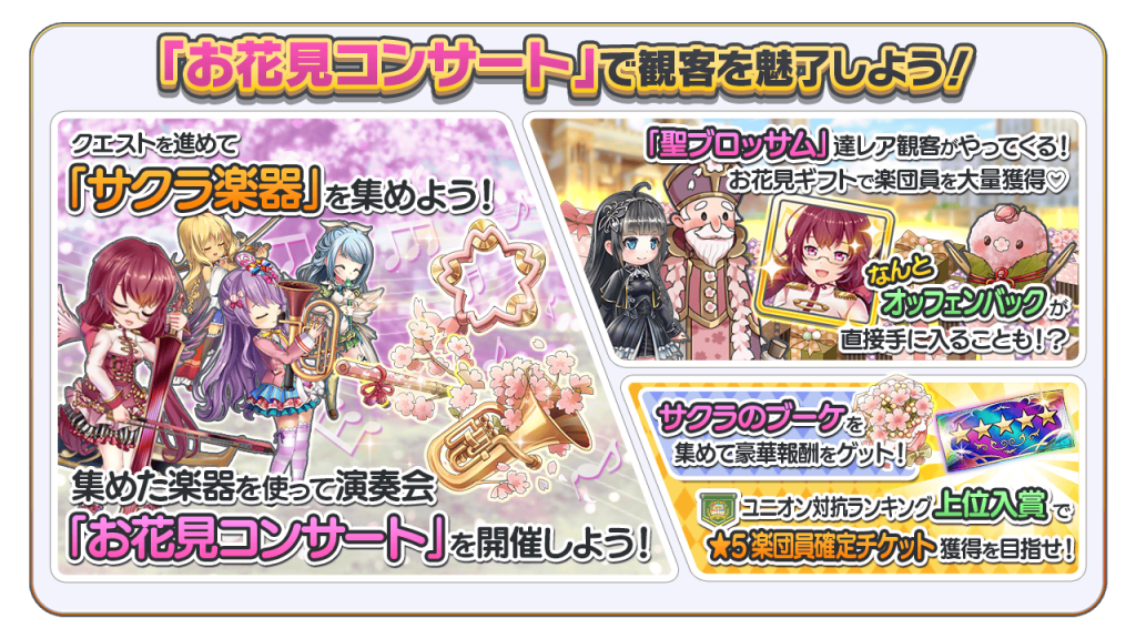 イベント限定演奏会「お花見コンサート」を開いて、新楽団員「★4 レヴィ・オッフェンバック」や豪華報酬を手に入れましょう!
