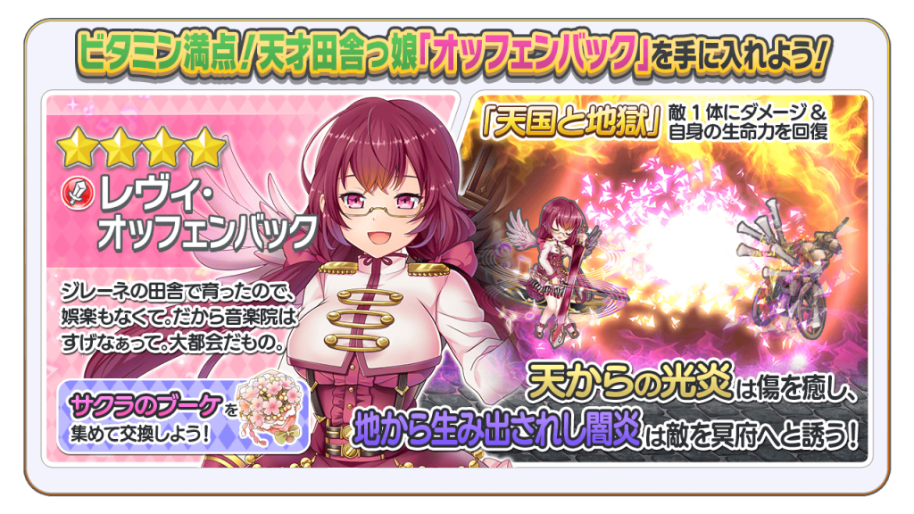 サクラのブーケを集めて、新楽団員「レヴィ・オッフェンバック」を手に入れましょう!