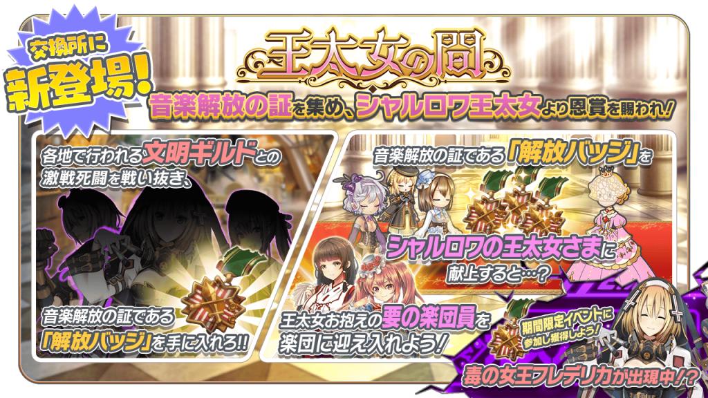 解放バッジ専用交換所「王太女の間」が追加されました。