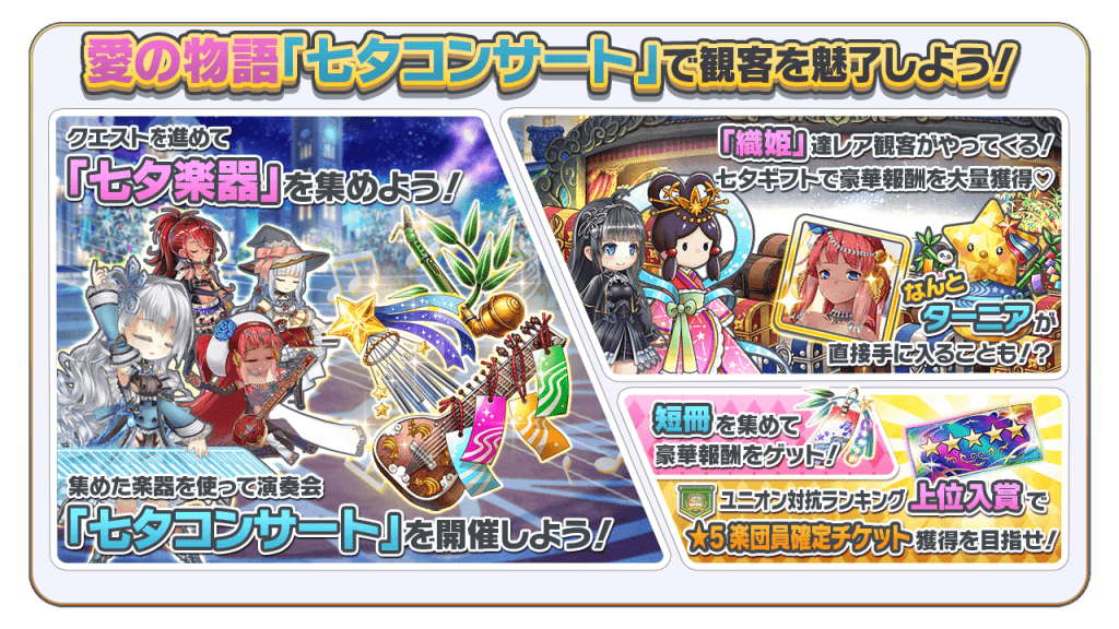 イベント限定演奏会「七夕コンサート」を開いて、新楽団員「★4 ターニア」や豪華報酬を手に入れましょう!