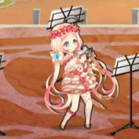 わーい!こんにちは指揮者くん。 私はオルギア。古き都から来たアウロスの音精。 アウロスは二つの管を持つ楽器で、単管よりも複雑な音が一度に出せるの。 さらに循環呼吸奏法っていう演奏の仕方で、ずっと音を出し続けることも出来るんだよ。