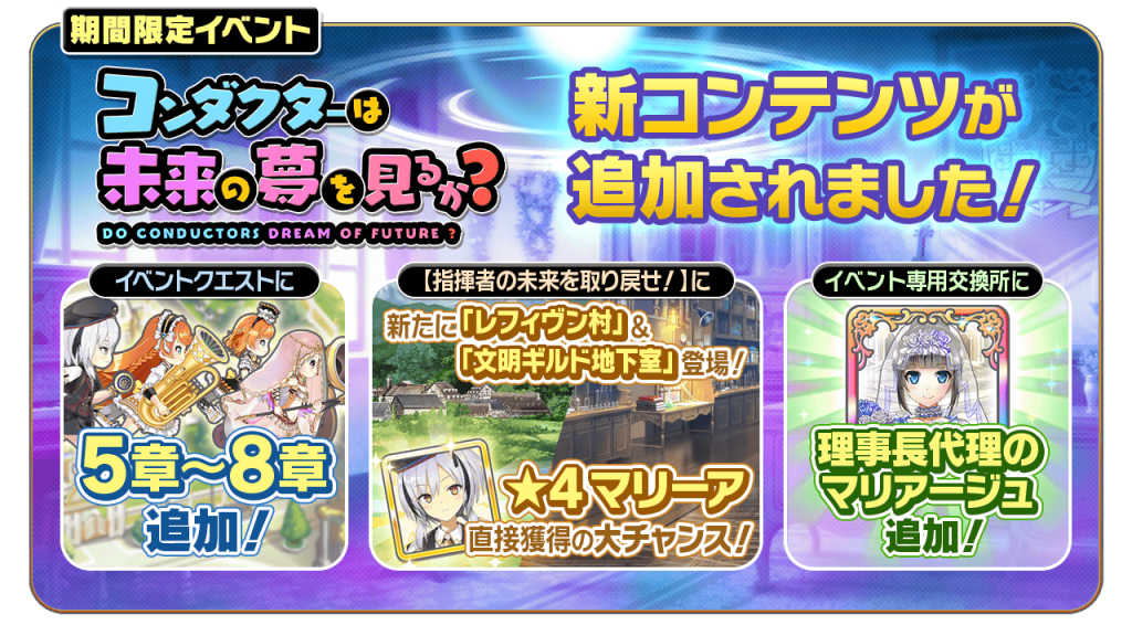 パワーアップした「コンダクターは未来の夢を見るか?」を遊び尽くし、新楽団員「★4 マリーア」や豪華報酬を手に入れましょう!