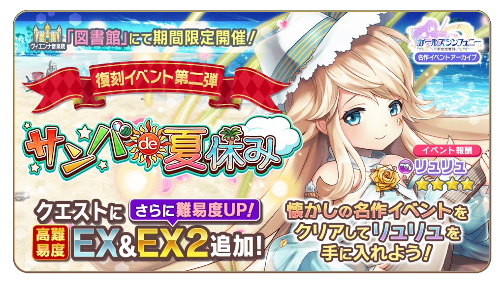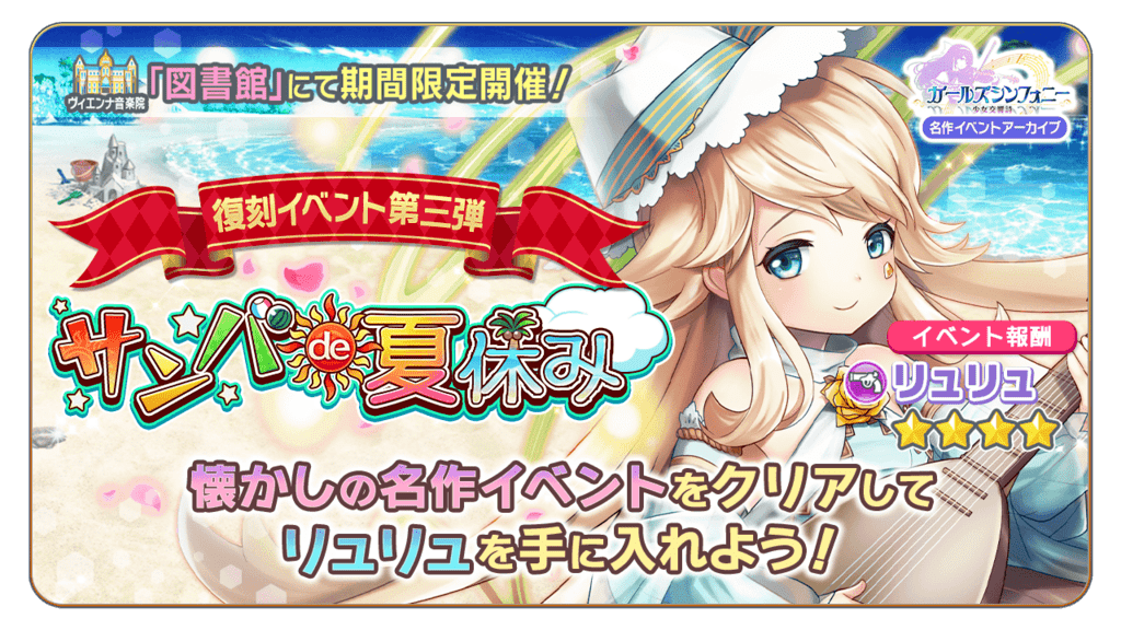 本日より、「ヴィエンナ音楽院」にて期間限定の復刻イベント「サンバde夏休み」を開催いたします。