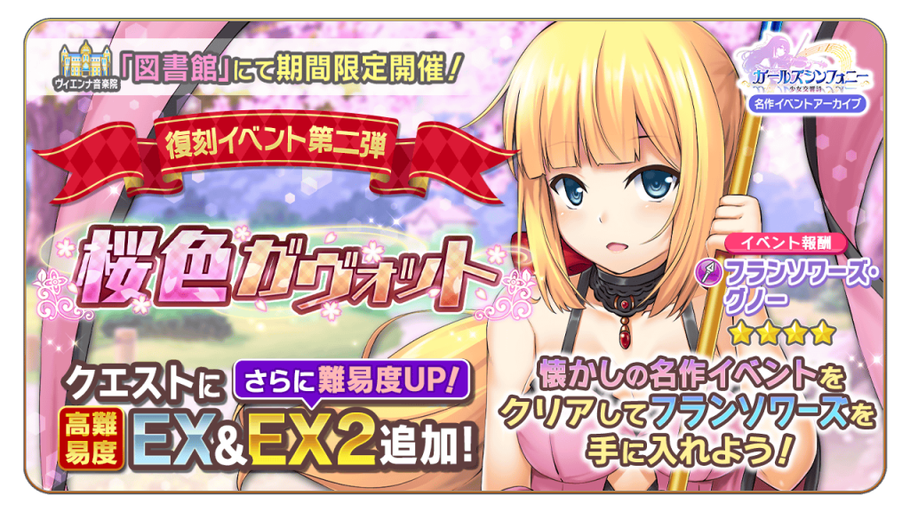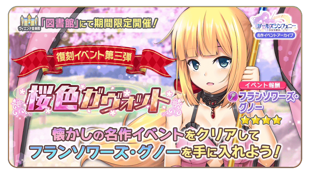 本日より、「ヴィエンナ音楽院」にて期間限定の復刻イベント「桜色ガヴォット」を開催いたします。