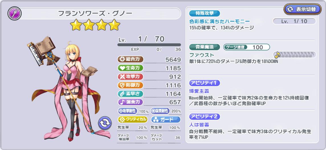 イベントクエストをクリアし、★4楽団員「フランソワーズ・グノー」を獲得しましょう!