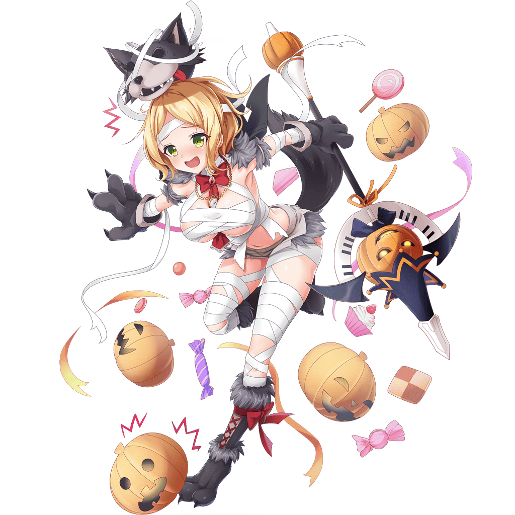 ![]() ハレルヤ! こんな格好してるけど、ジナ・ヘンデルです! 張りきったんですよ、あたし。 かわいい服大好きですし、 かわいい仮装しよう! って! でも衣装の注文を間違えるわ、 さらにそれを破いちゃうわで、ご覧の有様に……! このヘンデル一生の不覚! でももしかして、これはこれでかわいいですか……!? | 名前 | ジナ・ヘンデル | ||||