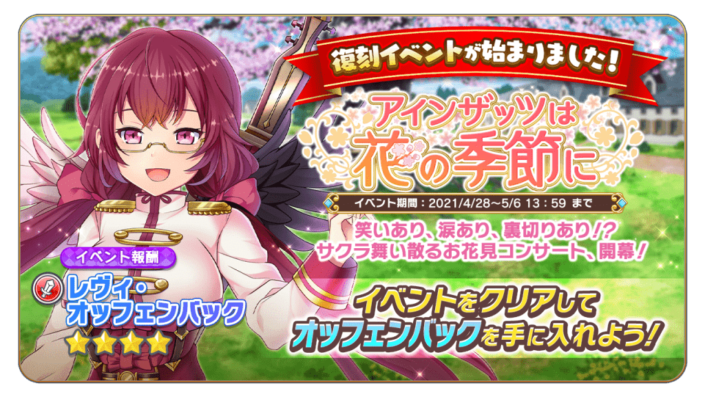 「サクラのブーケ」を集めて、★4楽団員「レヴィ・オッフェンバック」や「ウェディングブーケ」などの豪華報酬を獲得しましょう。
