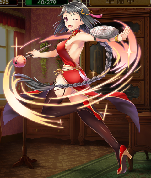 タムタムさんは賑やかで宴会好きの中華お姉さんで、長身のスタイル抜群な銅鑼の音精です。