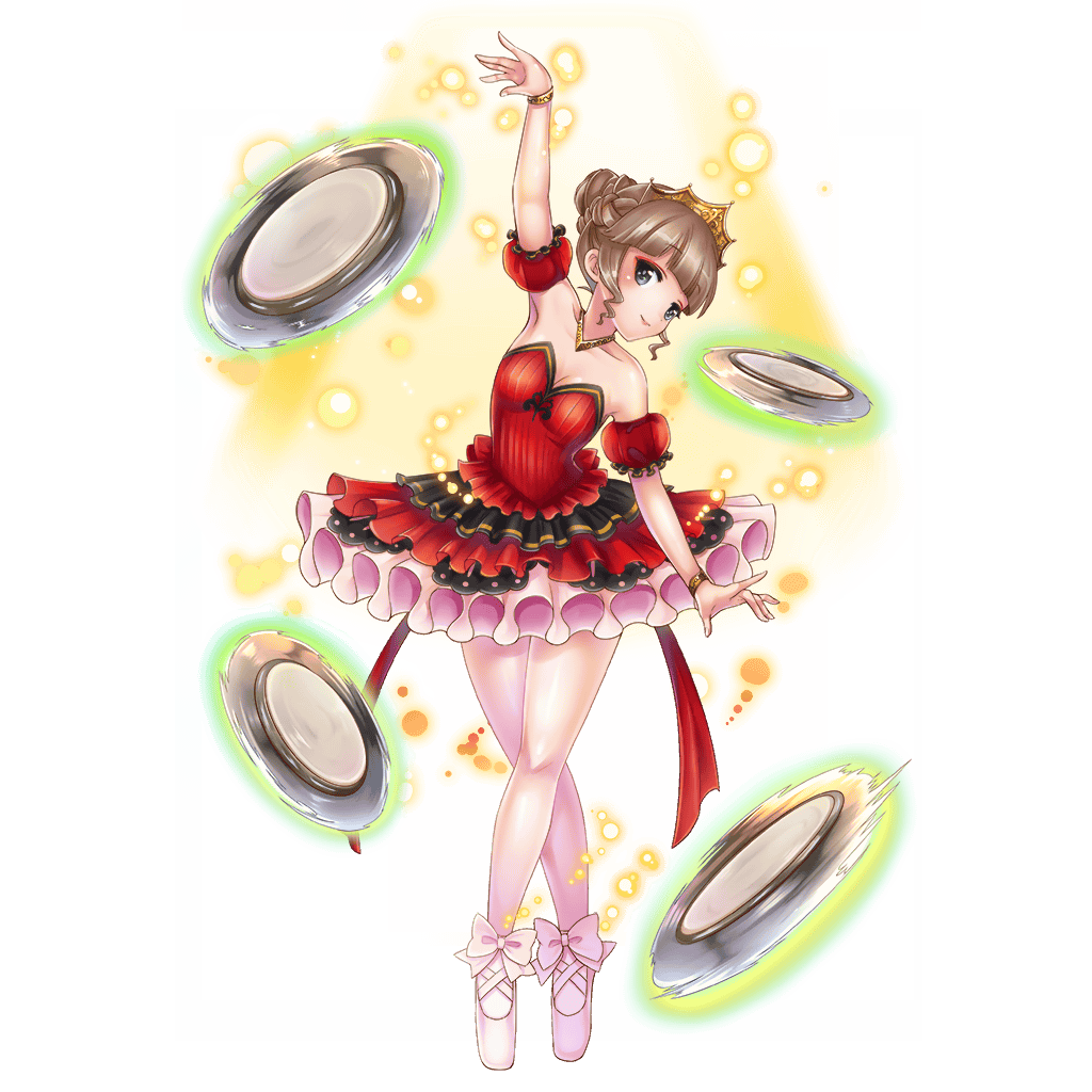| アビリティ:1 | 踊り続けたい | 第1楽章 | 被ダメージ時、一定確率で自身の防御力を3%UP | ||||
