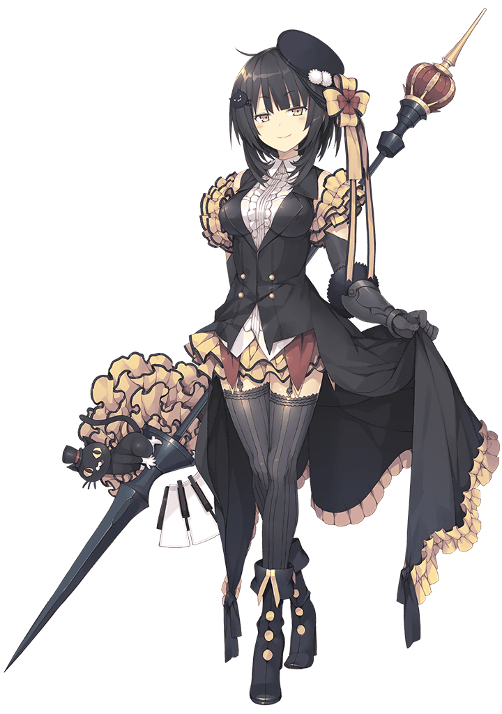 | シンフォニア装備 | ヴァルス・ノワール | Lv 1:生命力+??? 防御力+??? | エリアーヌが持つシンフォニア装備。 ピアノの黒鍵のごとく黒々としたその槍は、愛らしい黒猫の装飾がアクセントに。 | ||||