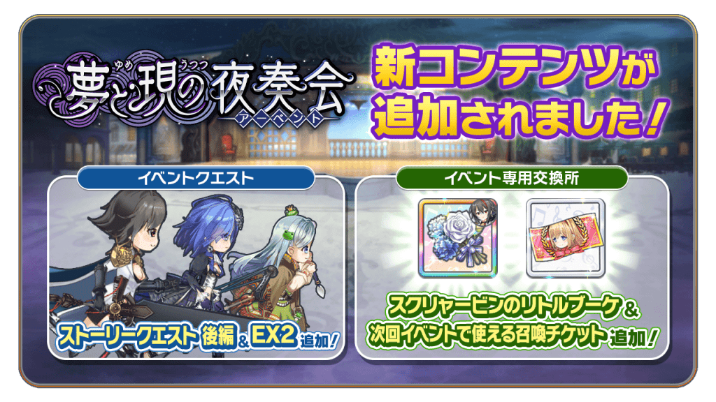 本日より、期間限定イベント「夢と現の夜奏会」に新コンテンツを追加しました。