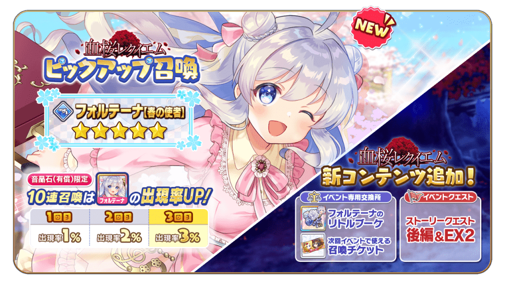 パワーアップした「血桜レクイエム」を遊び尽くして、★4楽団員「シュトラウス【春の使者】」を含む豪華報酬を手に入れましょう。